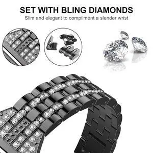 Compatible with Versa 2/Versa Lite/Versa, Women Replacement Metal Rhinestone Bling Bracelet Wristband, Black