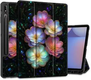 MEEgoodo Case for Samsung Galaxy Tab S10+ 2024/S9 Plus/S9 FE Plus 12.4 inch Cover 2023 with Pen Holder,Tablet Cases with Folding Stand+Soft TPU Back Shell + Smart Auto Wake/Sleep, Glitter Flowers