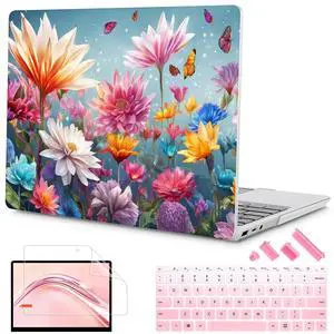 Tuiklol Case for 12.4 Inch Microsoft Surface Laptop Go 3/2 / 1 2023-2020 Releases, Plastic Hard Shell Case with Screen Protector and Keyborad Cover +Dust Plugs Model 2013/1943,Multicolored Floral