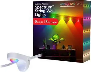 Spectrum Remote Controlled Indoor Accent Wall String Lights Color Changing LED USB Sconces 8ft with 6 Lights RGBWIC White 84313