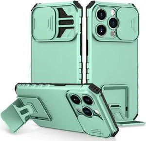 Camera Privacy Cover Hybrid Case with Kickstand for iPhone 14 Pro - Green