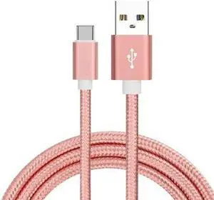 6.5 Ft. High-Speed 3A Nylon Braided USB-A to USB-C (Type-C) Charge & Sync Cable - Rose Gold