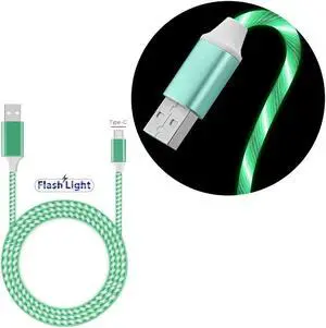 Flowing LED Lights USB-C (Type-C) Charge and Sync Cable - Green