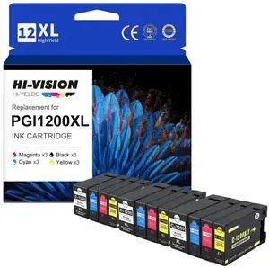 HI-VISION HI-YIELDS Compatible Ink Cartridge Replacement for Canon PGI-1200XL PGI-1200 XL to Use with Maxify MB2720 MB2320 MB2120 MB2350 MB2050 MB2020 Printer (3 Black,3 Cyan,3 Magenta,3 Yellow)