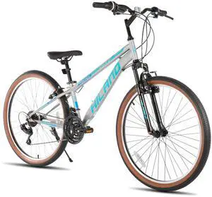 HILAND Mountain Bike 21 Speeds, Lock-Out Suspension Fork, Aluminum Frame, Hydraulic Disc-Brake, 27.5 Inch Wheel, Grey MTB for Men and Women