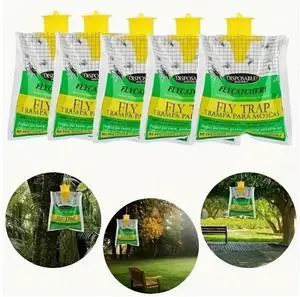 5 green fly traps, outdoor hanging foldable fly traps, fly capture bags