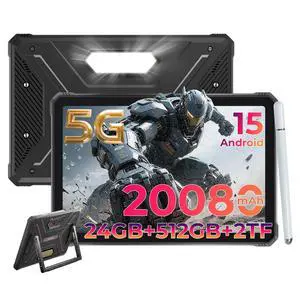 HOTWAV R9 Ultra 5G Rugged Tablet, 24GB + 512GB/TF 2TB Android 15 Tablet with Pen, 11 Inch 2K FHD+ Waterproof Tablets, 20080mAh, 64MP+20MP, Octa-Core, Dual SIM/Gemini AI /IP68&IP69K/Face ID/OTG/WLAN 5