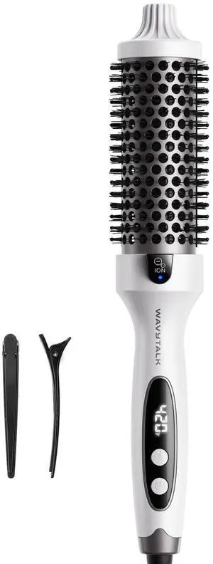 Blowout Boost Thermal Brush, 1.5 inch Heated Round Brush for Blowout Look, Negative Ion Technology, Ceramic Tourmaline, 5 Temperature Settings, Dual Voltage, White