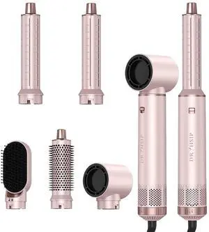 5 in 1 Hair Styler Curler & Air Dryer Brush, Low-Speed Negative Ionic Air Styler Drying, Multi Hair Styler, Professional Blow Brush for Curling Volumizing Straightening Styling (Pink)