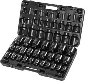 VEVOR Impact Socket Set 3/4 Inches 29 Piece Impact Sockets, 6-Point Sockets, Rugged Construction, CR-M0, 3/4 Inches Drive Socket Set Impact SAE 3/4 inch - 2-1/2 inch, with a Storage Cage