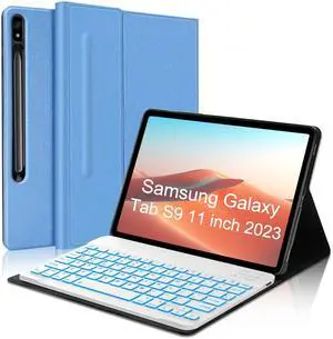 Keyboard Case for Samsung Galaxy Tab S9 FE 10.9" /Tab S9 2023 / S8 / S7 11inch 2022/2020, 7 Color Backlit, Magnetic Detachable Wireless Keyboard, Smart Thin Folio Cover case, Auto Sleep/Wake, Blue
