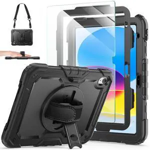 Ambison for iPad 11th/10th Generation Case 11''/10.9'' 2025/2022,Heavy Duty Rugged Shockproof Protective Cover with Tempered Glass Screen Protector, Rotating Stand,Hand Strap | Kid-Proof Design -Black
