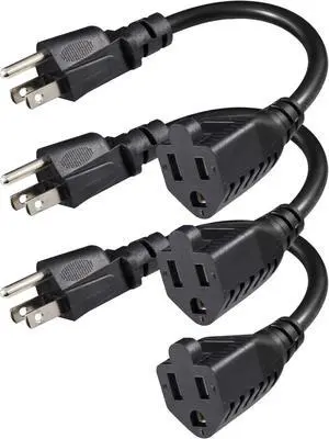 KUNCAN Short Power Extension Cord - 8 Inches 3 Prong Grounded Outlet Saver 16AWG/13A Heavy Duty Power Cord (NEMA 5-15P to NEMA 5-15R) Indoor Use Power Split Plug Extender (Black 3-Pack)