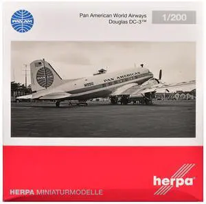 Douglas DC-3 Commercial Aircraft "Pan American World Airways" (N19912) White with Blue Stripes 1/200 Diecast Model by Herpa