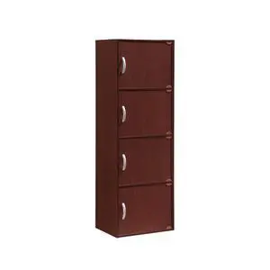 Hodedah 4-Shelf, 4-Door Bookcase in Mahogany