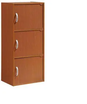 Hodedah 3-Shelf, 3-Door Bookcase in Cherry