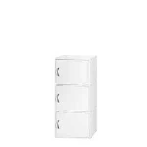 Hodedah 3-Shelf, 3-Door Bookcase in White