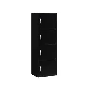 Hodedah 4-Shelf, 4-Door Bookcase in Black