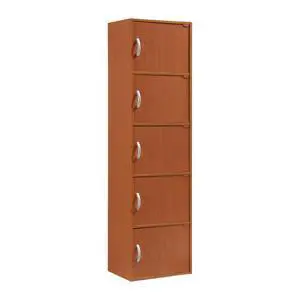 Hodedah 5-Shelf, 5-Door Bookcase in Cherry