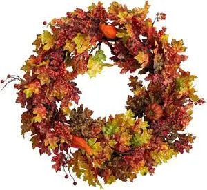 Nearly Natural 32" Autumn Oak Leaf, Pumpkin Artificial Autumn Wreath