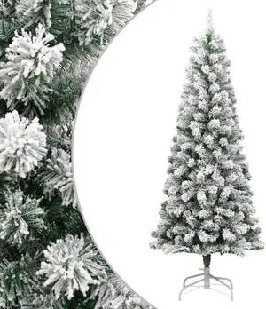 vidaXL Artificial Christmas Tree 150 LEDs&Ball Set&Flocked Snow Xmas Decoration