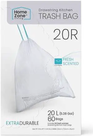 Home Zone Living 5.3 Gallon Kitchen Trash Bags with Drawstring Handles, Heavy Duty Custom Fit Design for 20 Liter Dual Recycling Liners, Code 20R, 60 Count
