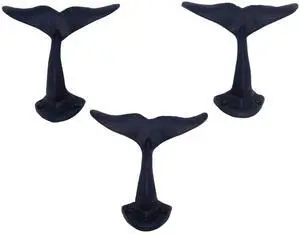 Set of 3 Decorative Cast Iron Whale Tail Hooks Ocean Inspired Wall Hooks for Coastal Or Nautical Decor Durable Whale Tail Hangers for Keys, Towels, Or Bags