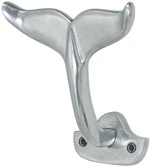 Nautical Whale Tail Hook, Heavy Aluminum Cast Wall Hooks Decorative Coastal Home Decor, 8 inches