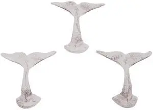 Distressed White Whale Tail Cast Iron Wall Hooks, Wall Mounted for Hanging Coats, Purses, Towels, Hats, Beach Themed Wall Décor, Set of 3, 4.75 Inches High