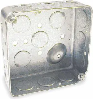 RACO 190 Electrical Box, Square, 2 Gangs, Galvanized Zinc, 1-1/2 in D, 4 in W,