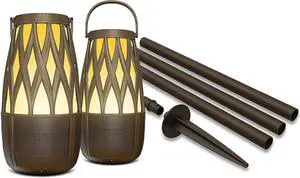 ION Audio Tahiti Pair Outdoor Bluetooth Speakers with Solar Panel, Tiki Torch Lights, IPX 5 Waterproof, 360 Sound, Multi-Sync for Garden, Patio