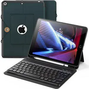 INFILAND for iPad 9th Generation Case with Keyboard 10.2 Inch iPad 9th/8th/7th Gen, Folio Cover with Pencil Holder, Slim Protective Detachable Keyboard Case for Apple iPad (Midnight Green)