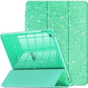 INFILAND for iPad 9th Generation 2021/ iPad 8th Generation 2020/ iPad 7th Generation 2019 Case 10.2 inch, Glitter Cover with Clear Back, Pencil Holder for Kids Girls (Seafoam Green)