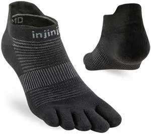 Injinji Unisex Run Lightweight No-Show Toe Socks, Black, Large
