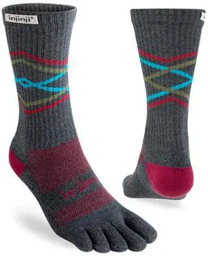 Injinji Unisex Trail Midweight Crew Comfortable Socks, Granite, Large