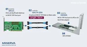 PCIe x16 Gen5 with Redriver to MCIO 74P Daul port with MCIO 74P Cable 50cm with MCIO 74P Daul port to PCIe x16 Gen 5 Slot adapter
