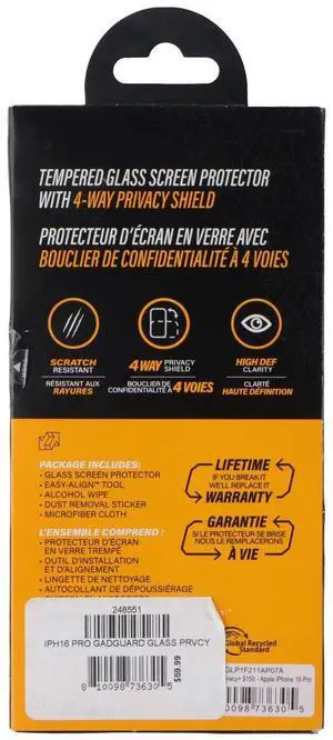 Gadget Guard Glass Screen Protector for Apple iPhone 15 Pro Max - Privacy