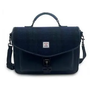 Islander The Laptop Bag - Made of Microfibre Leather & Harris Tweed (Black Watch Tartan)