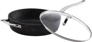 The Rock Classic 11" (28cm) Non-Stick Deep Fry Pan with Helper Handle and Glass lid - Durable Forged Aluminum - Oven Safe - PFOA Free - Easy to Clean