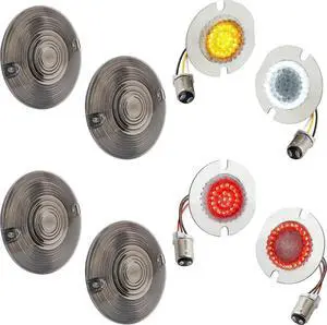 1157 Front Rear LED Turn Signals 3 1/4 inch Flat Smoked Lens Covers Brake Running Light Compatible with Harley Road King Electra Glide Touring
