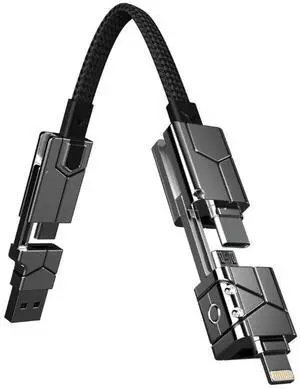 ® Zeus-X Go Ultra 6 in 1 Keychain Universal Cable 240W 10Gbps USB3.1 USB-C, Lightning, Micro-USB, USB-A (Apex Silver, 2m/6.6ft)