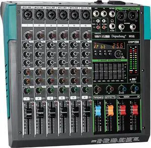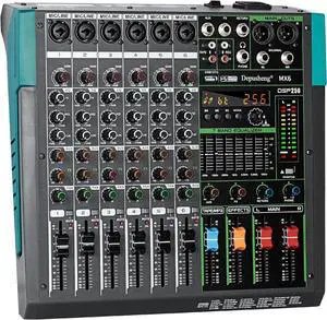 MX6 6 Channel Sound Mixer Audio Mixing Console 48V 256DSP Professional USB PC Play Record Podcast Live Broadcast (US MX6)