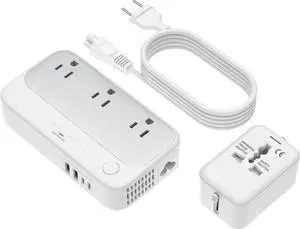 Universal Voltage Converter us to Europe, 220v to 110v Power Travel Converter Combo, 250W Step Down European Adapter 220 to 110 for UK Italy, Transformer European Travel Plug for Curly Hair Stick