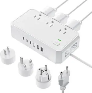 US to Europe Travel Adapter 220V to 110V Voltage Converter with 4.5A 6-Port USB Charging and UK/AU/US/EU Worldwide Plug Adapter