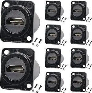 10Pack HDMI Panel Mount Coupler, HDMI D-Type Pass Through Connector, Female to Female 4K Adapter, Bulkhead Extension 4K 60hz 3D and HDR with Cap