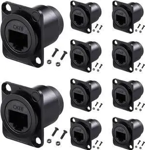 10PCS D-Type RJ45 Coupler, Shielded RJ45 Panel Mount Connector, CAT6/CAT5E/CAT5 Female to Female LAN Network Bulkhead Pass Through Socket