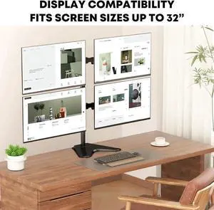 Quad Monitor Stand, 4 Monitor Mount for 13 to 32 inch Screens, Holds up to 19.8lbs Each, Fully Adjustable, Black