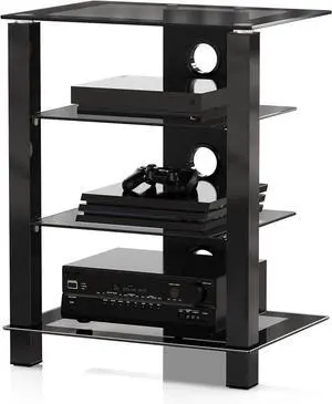 4-Tier AV Media Cabinet Stand Component Cabinet, Gaming TV Stand and Stereo Rack Audio Tower with Height Adjust Tempered Glass Shelves, AS406003GB