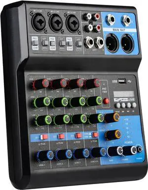 Dj Mixers 5 Channel Audio Mixer Sound Board with Bluetooth, Usb Audio Interface with 48V Phantom Power Sounds Mixer Board with FX Reverb Delay Effect for Streaming