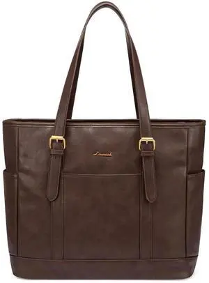 LOVEVOOK Laptop Tote Bag for Women,Vintage Leather Work Tote Bag for Women, 15.6 Inch Computer Briefcase Bag,Waterproof Teacher Business Office
